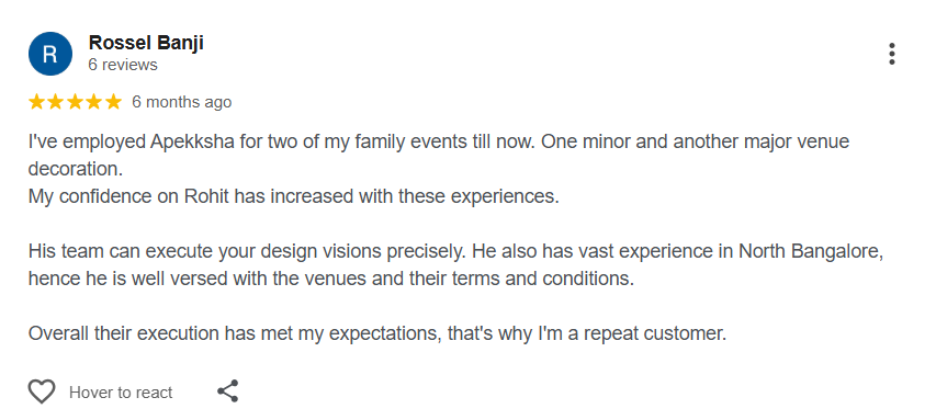 Appeksha Events Bangalore Events Offer Wedding & Haldi Decoration Themes at Affordable Rates. We have various wedding setups including Real flowers decorations, Backdrops, Led Lights & many more.